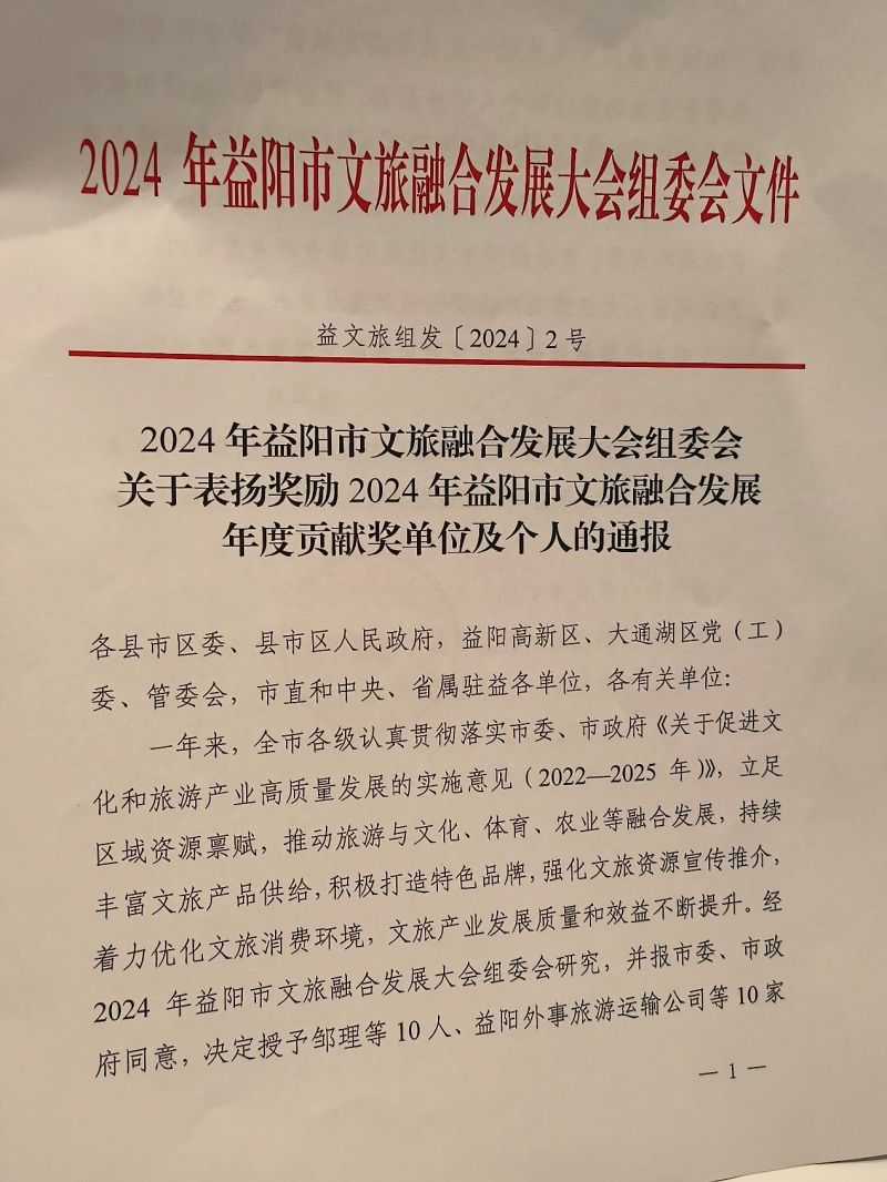 2024年益陽市文旅融合發(fā)展年度貢獻獎!